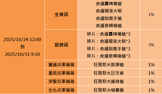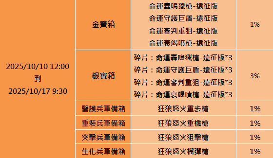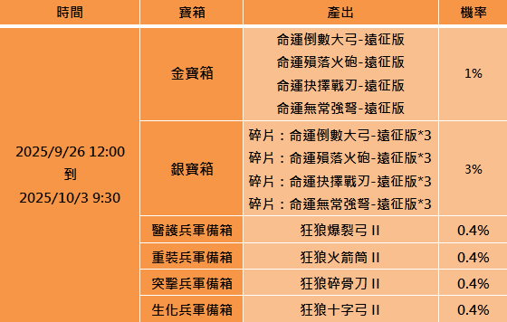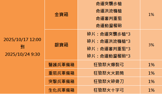 銀寶箱3%機率可以開到對應武器的碎片*3喔!